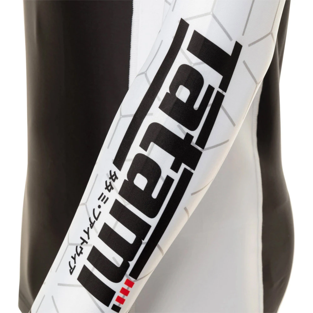 - Black torso with belt rank design represented across shoulders & sides in white